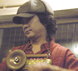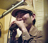自作のウォッシュボードで数々の奏法を編み出す。